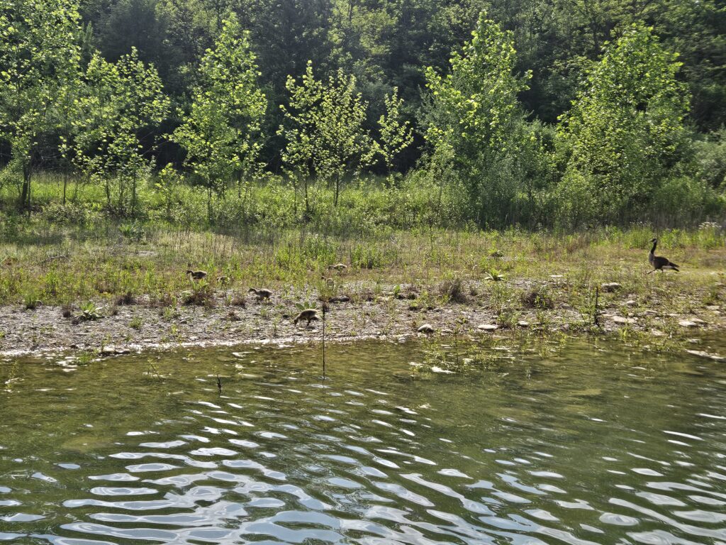 Goose couple with 6 or 7 goslings