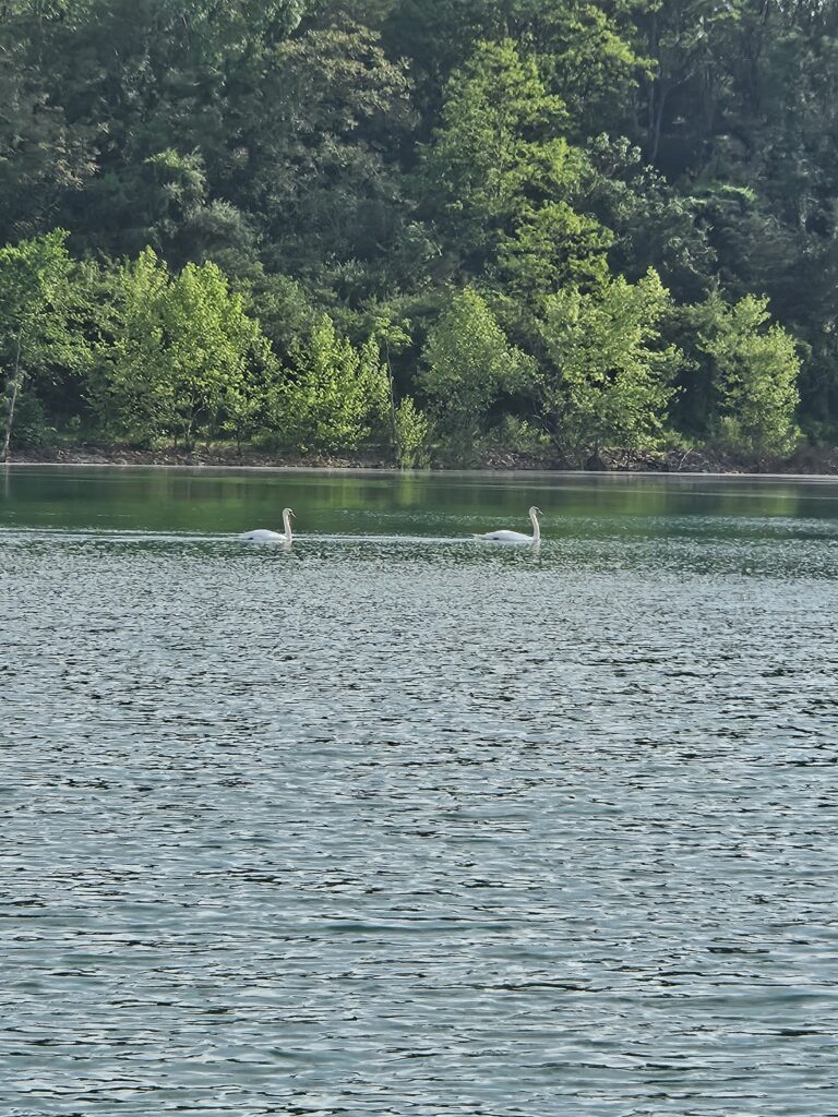 Visiting Swans’ whites gleam from across the lake