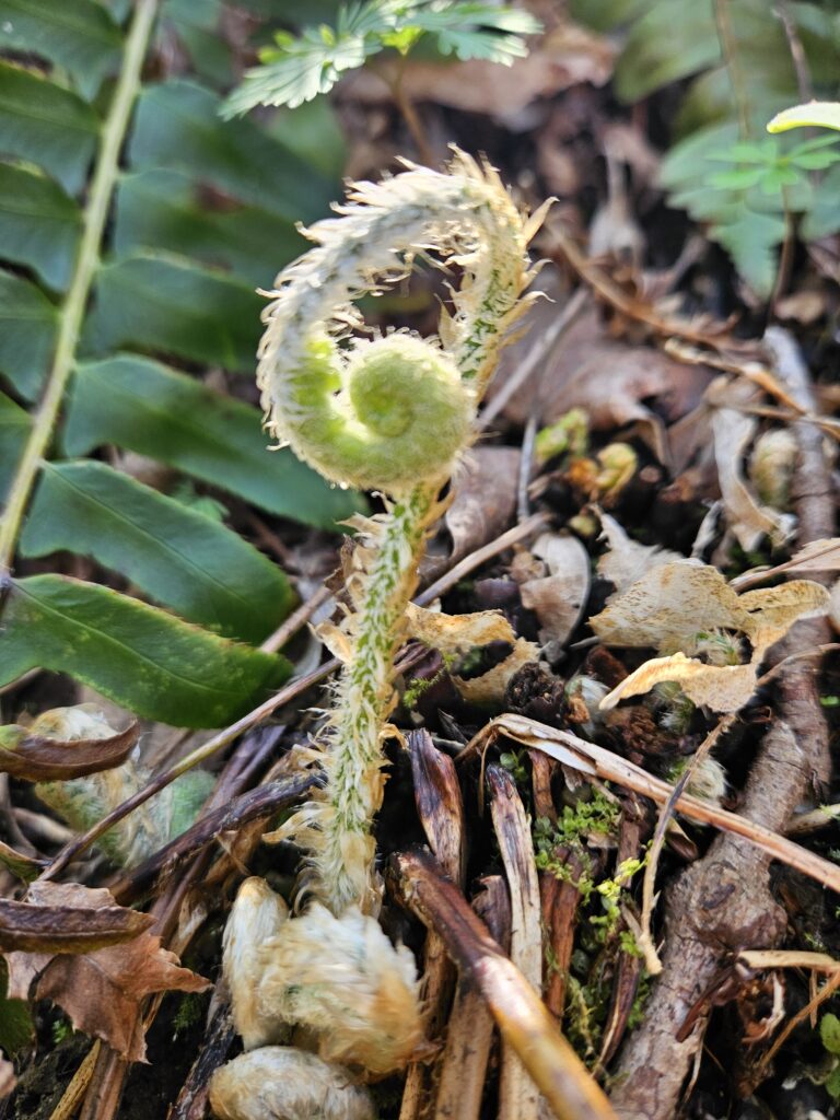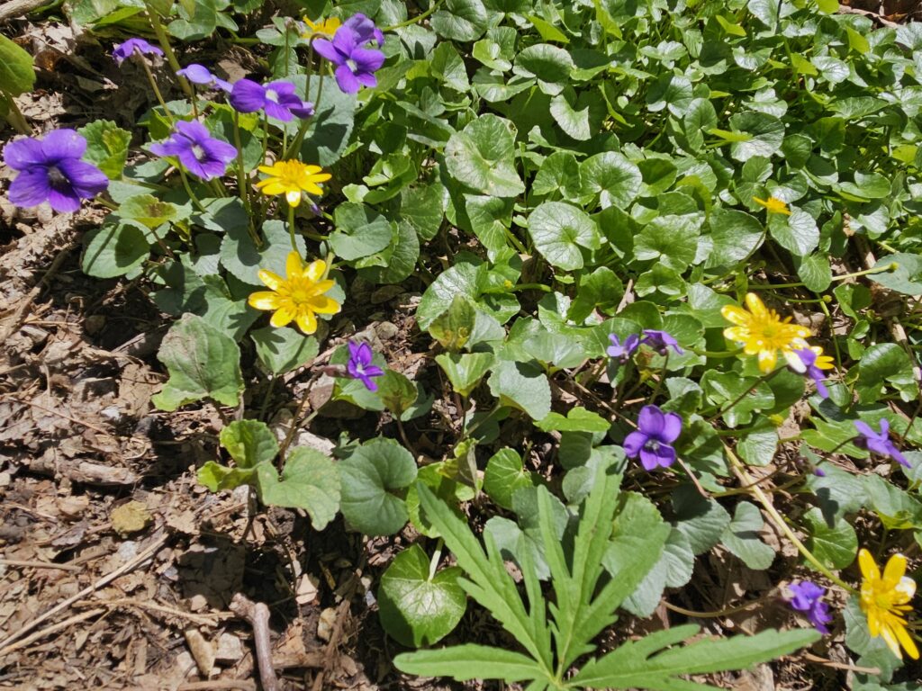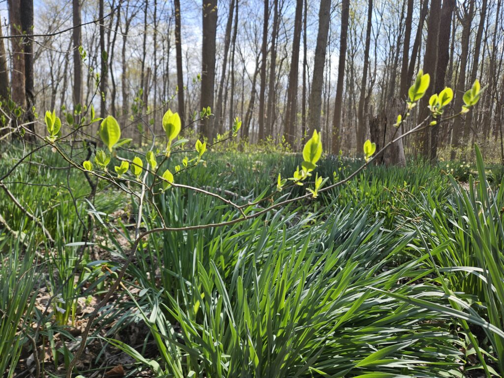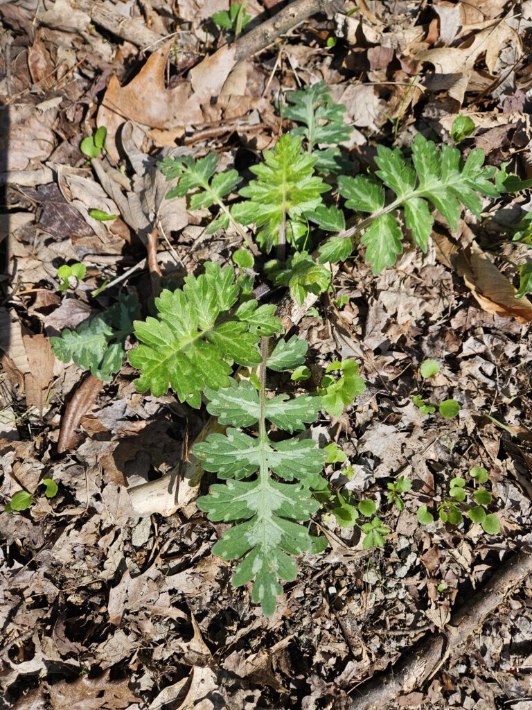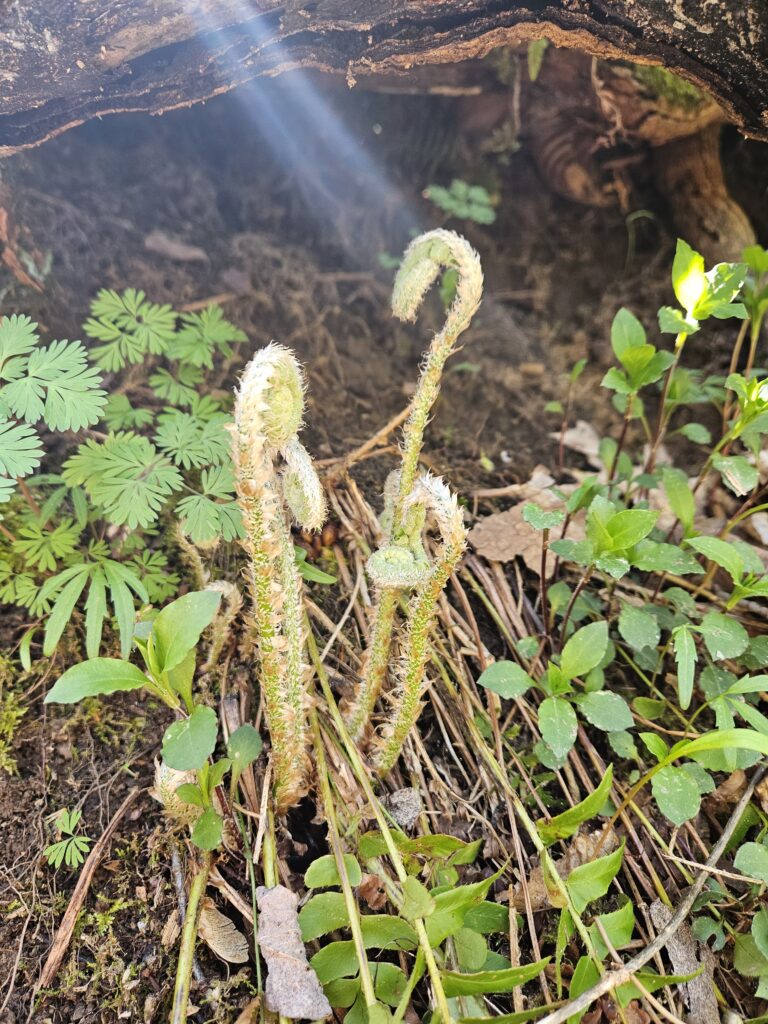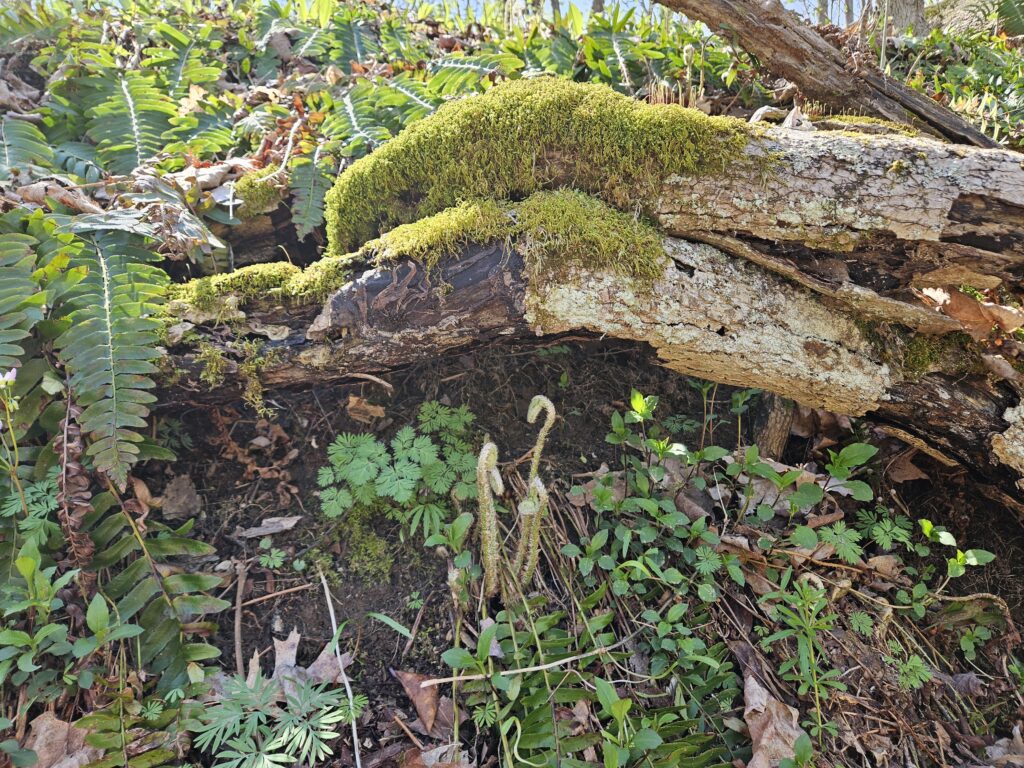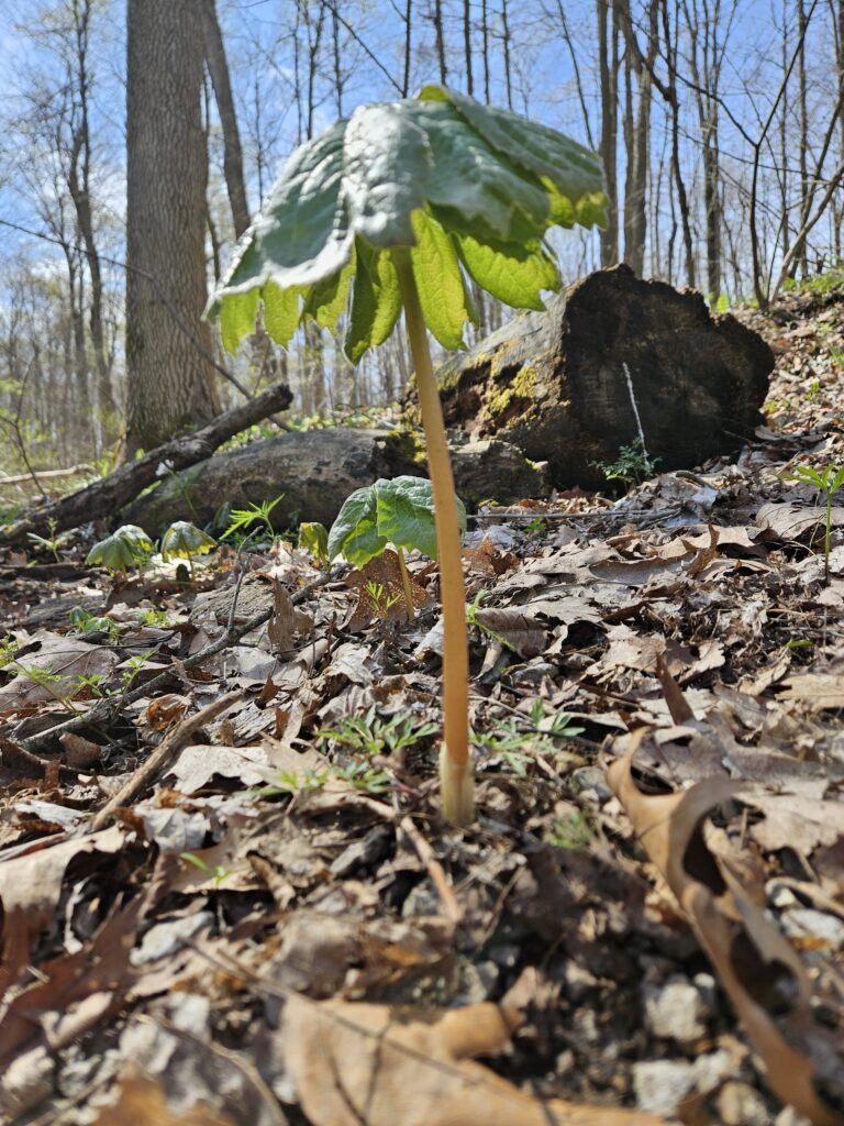 Mayapple umbrella leaves starting to pop up