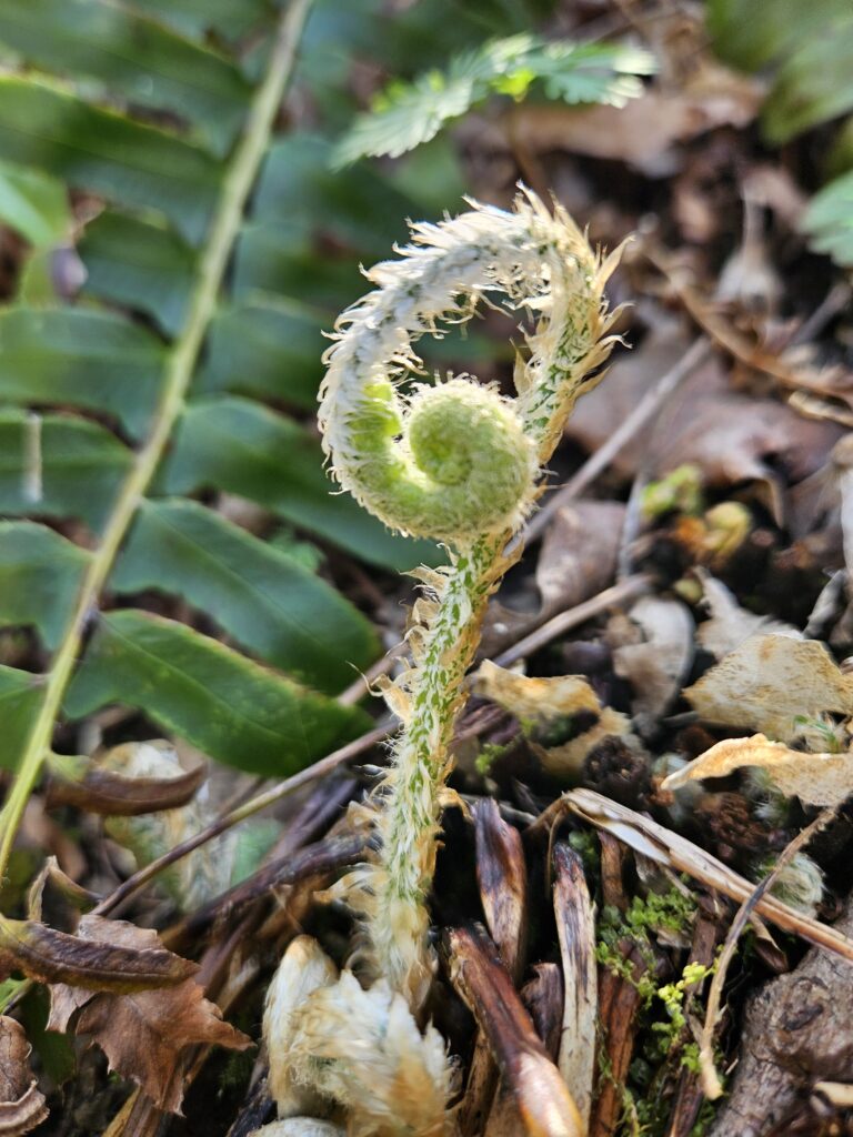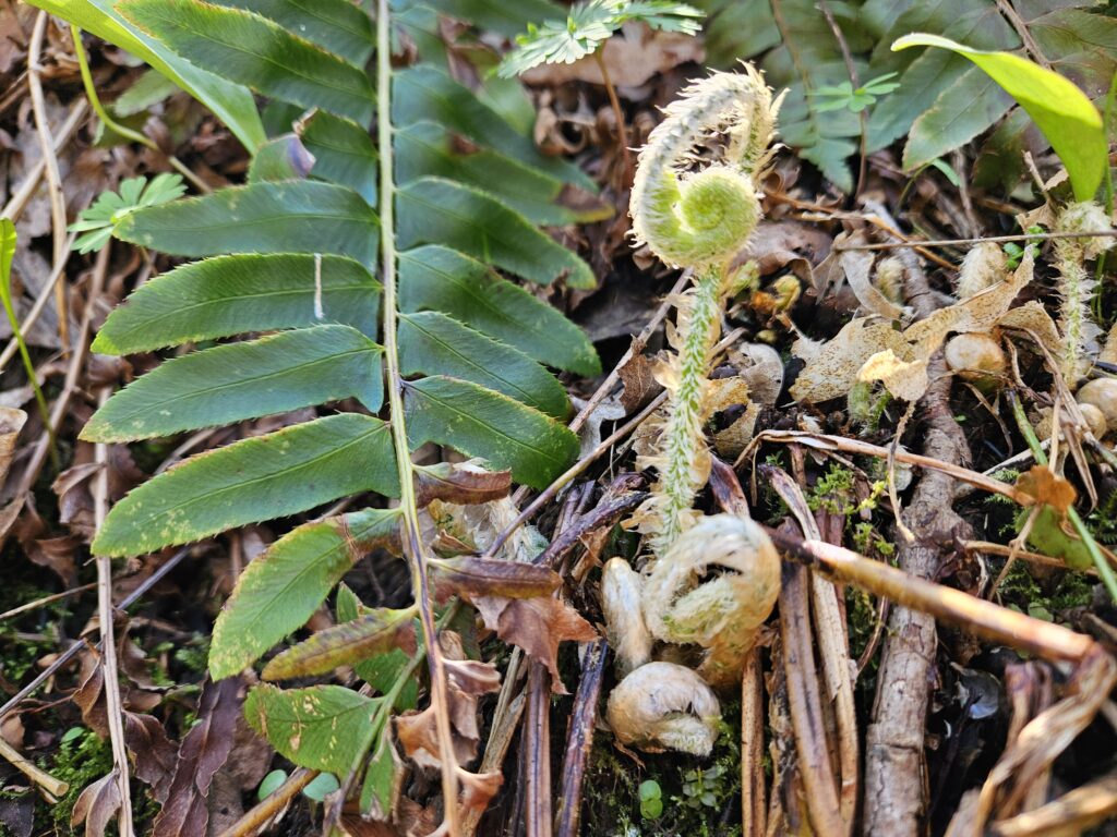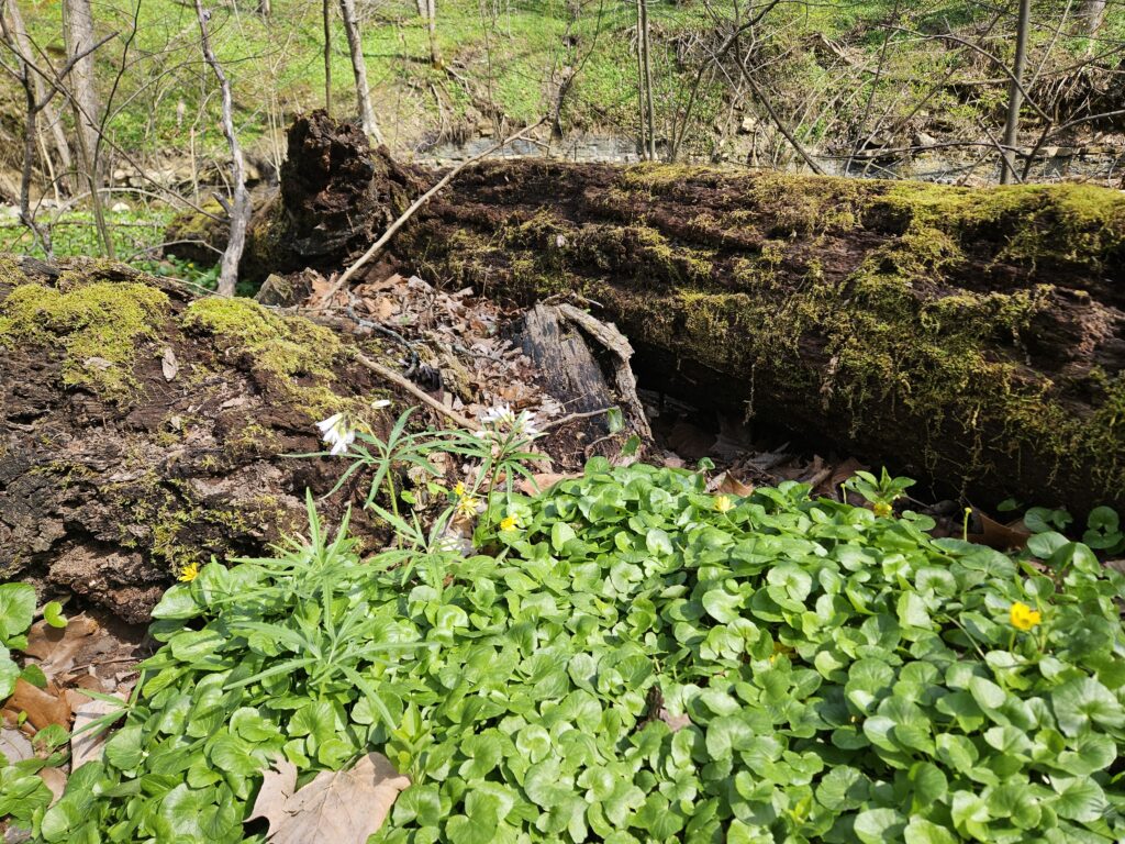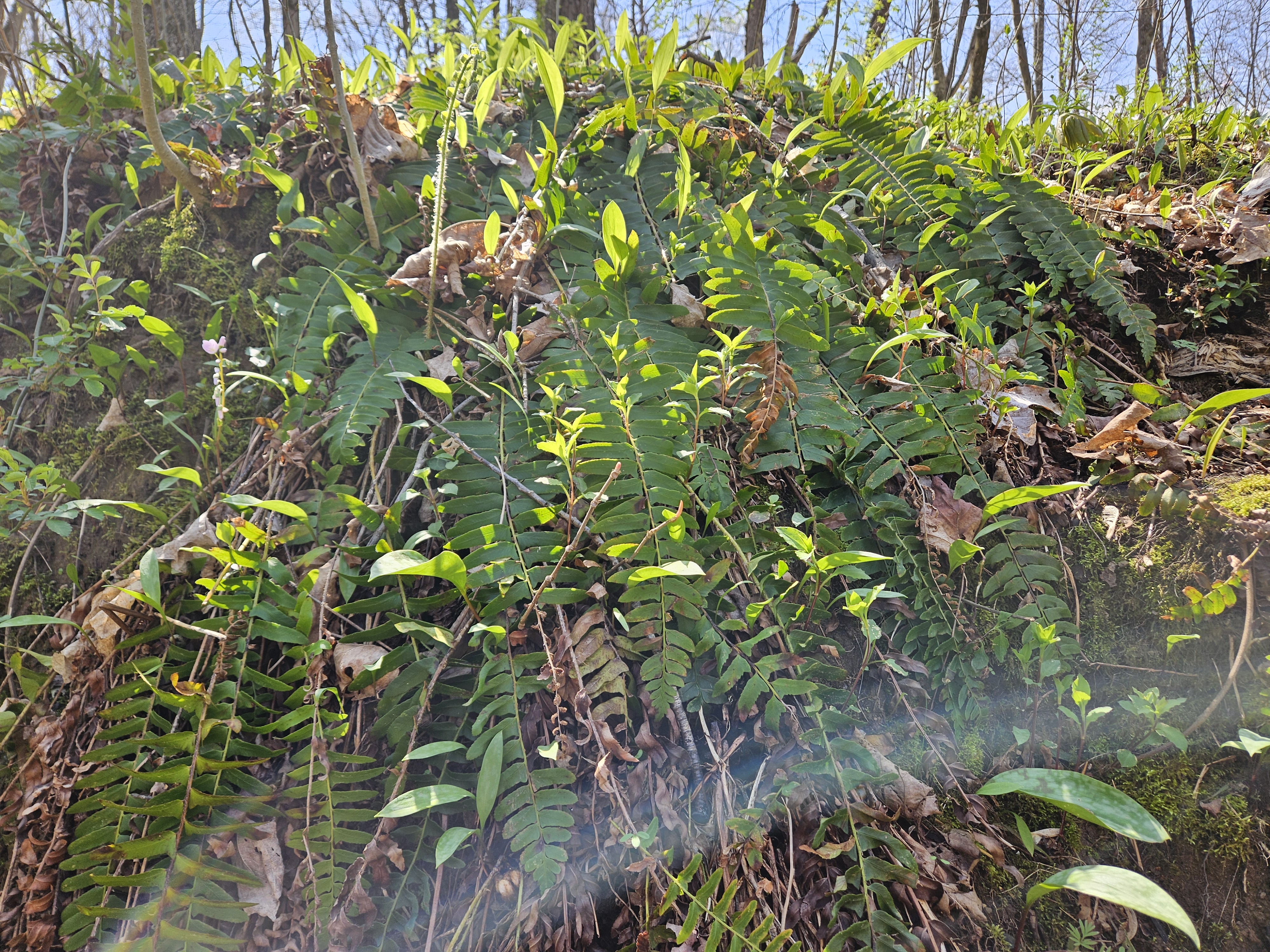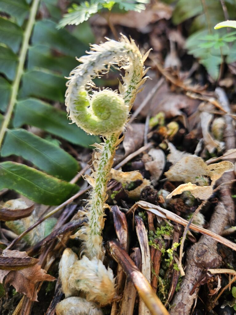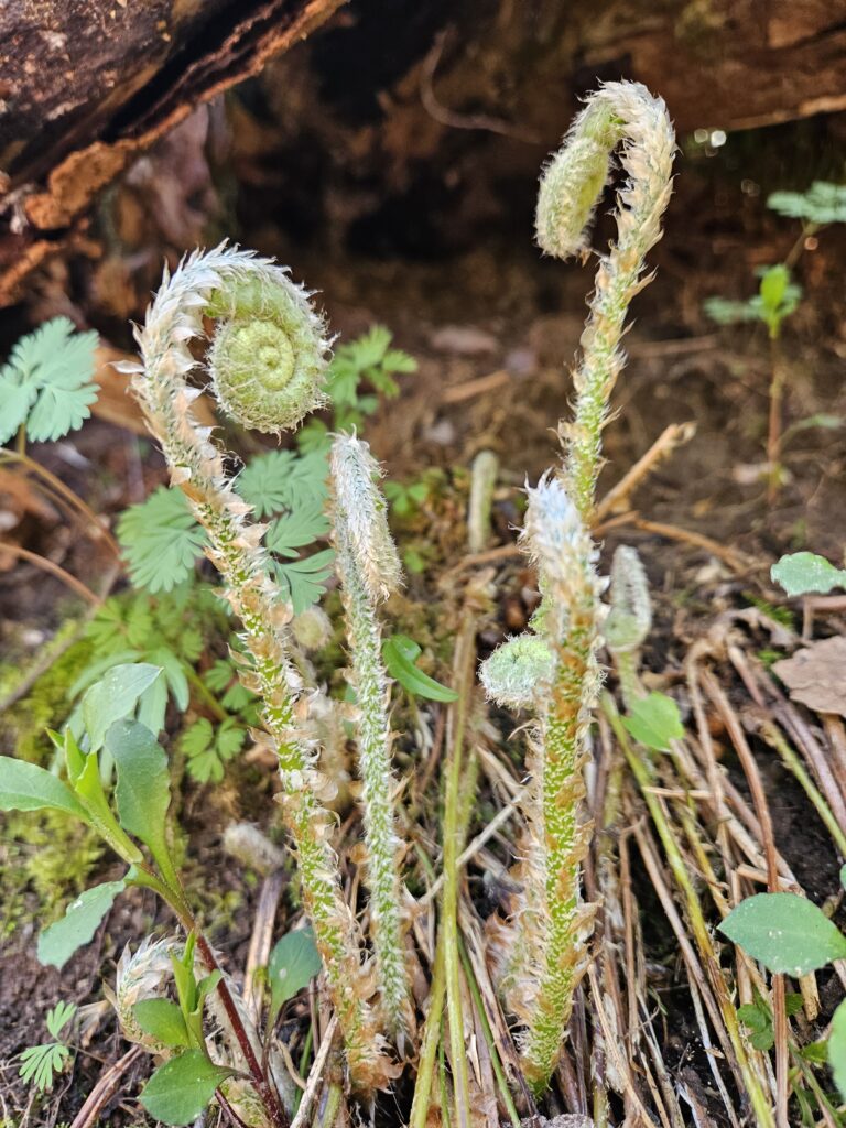Mayapple umbrella leaves starting to pop up