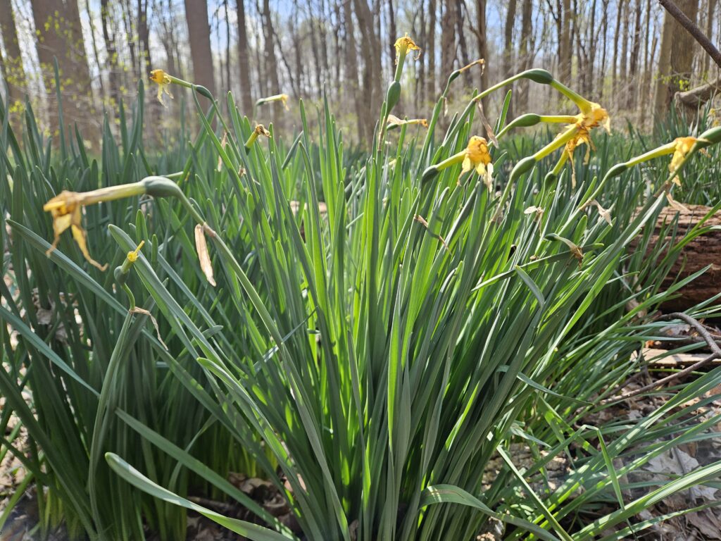 Daffodil flower tops beginning to retreat