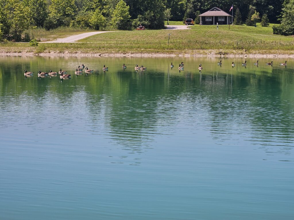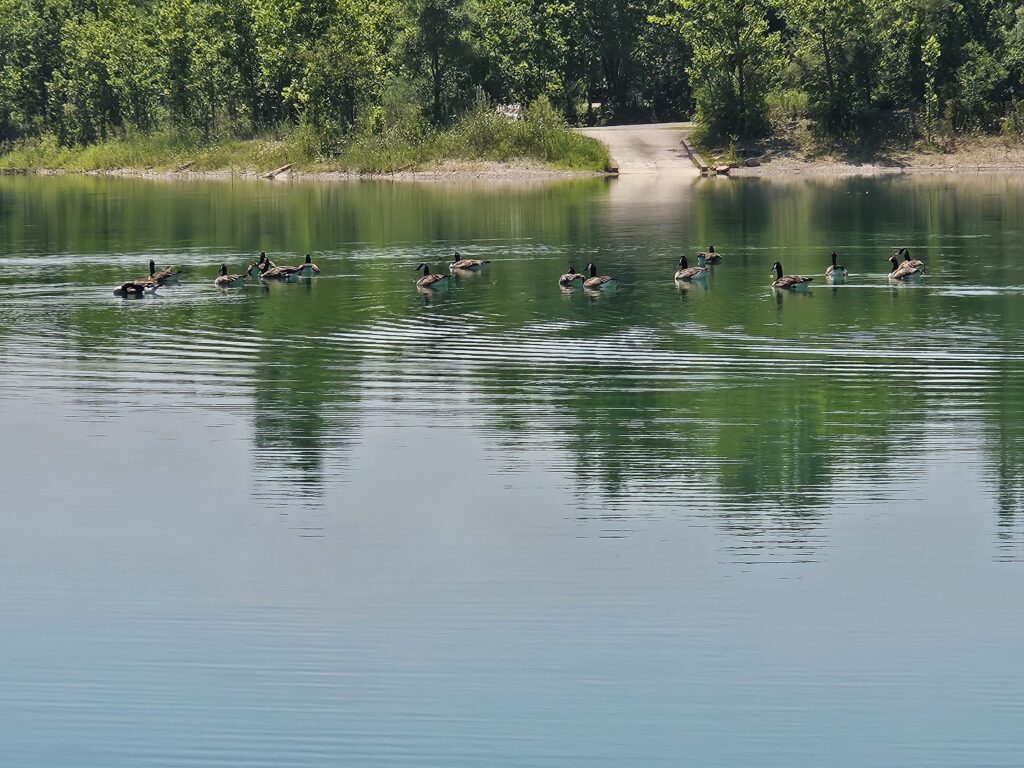 Silent floating geese relax in afternoon sun
